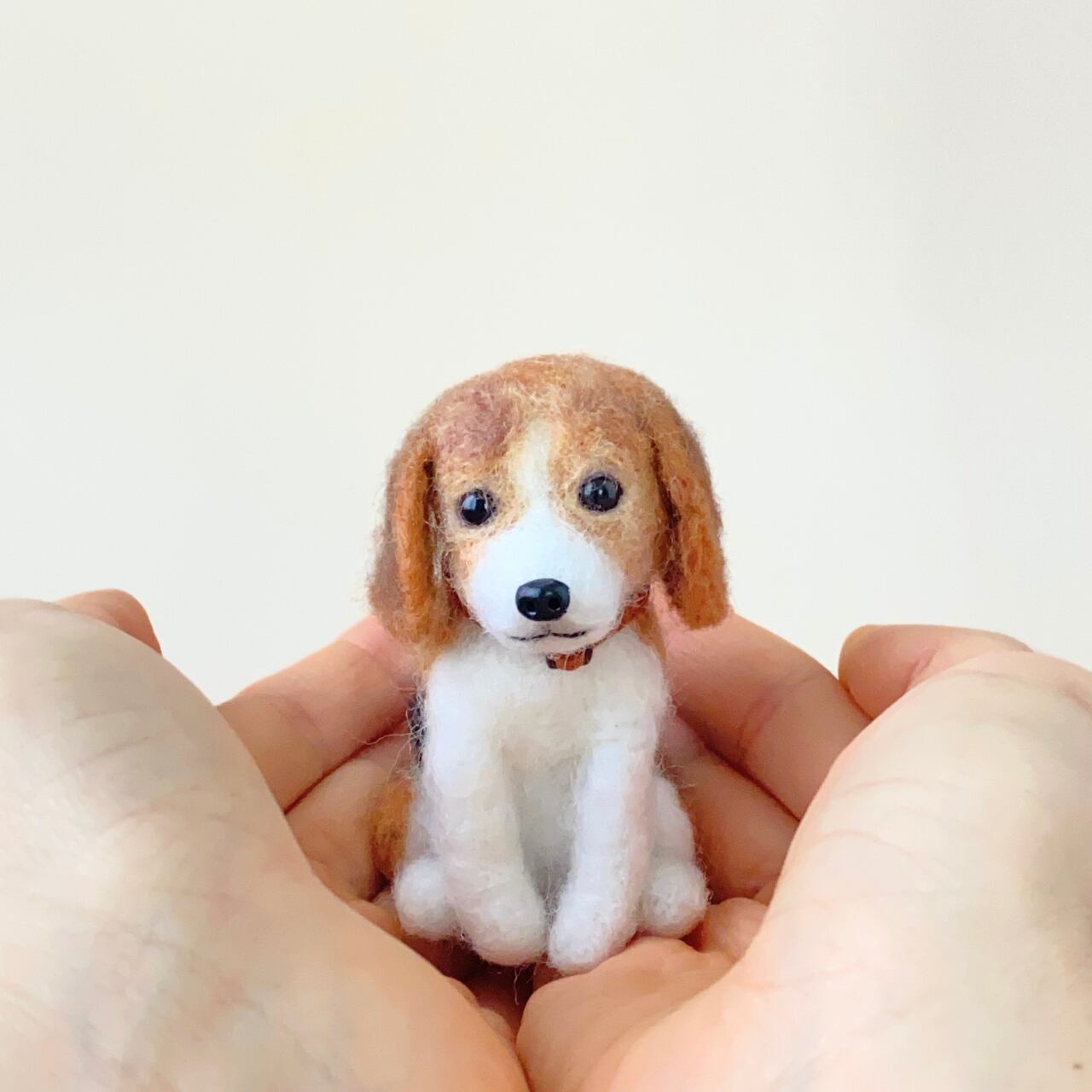 【受注制作】いつでもいっしょ♪羊毛フェルトのおすわりビーグル 犬のぬいぐるみ