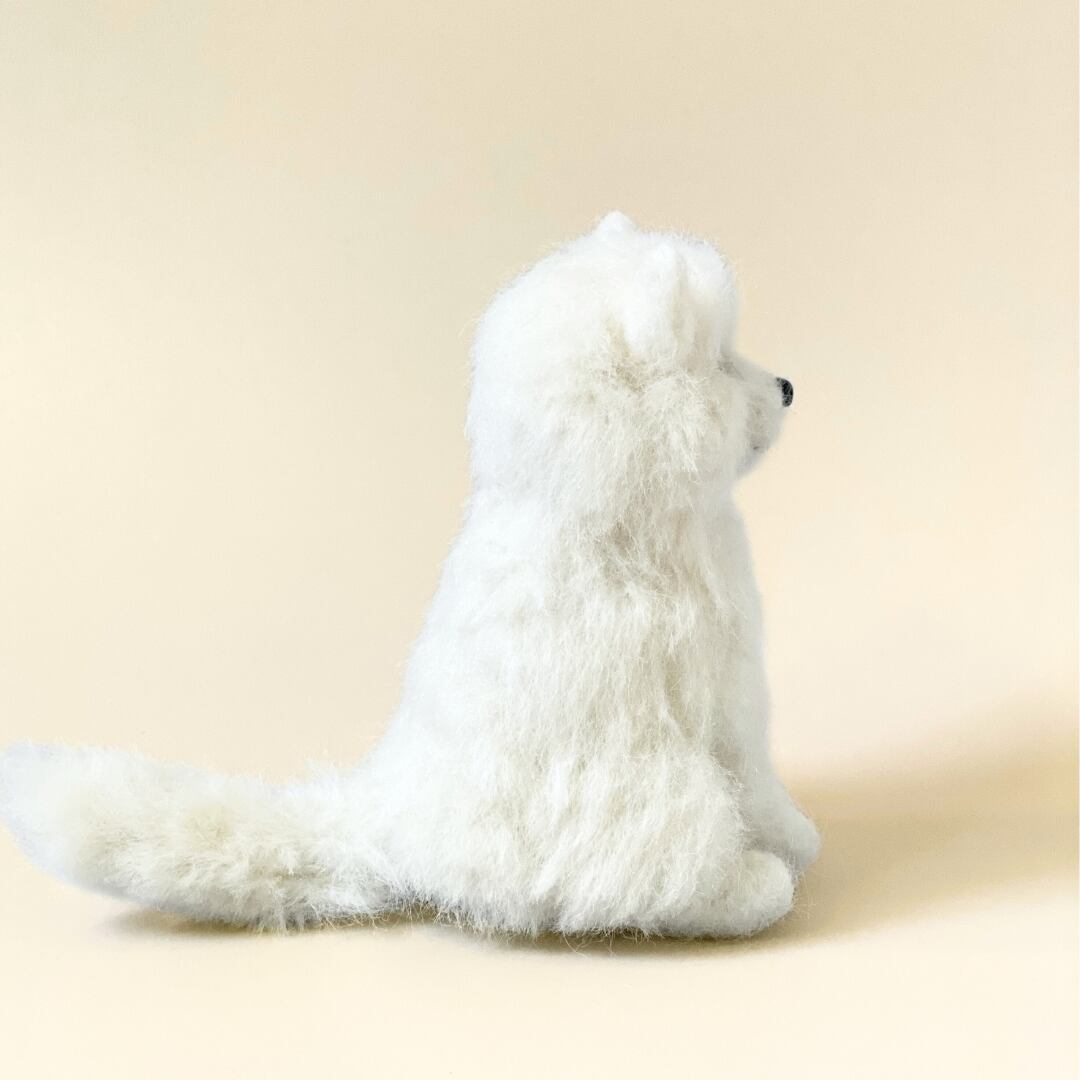 もふもふした まっ白な毛並みが愛らしいサモエドのぬいぐるみ。