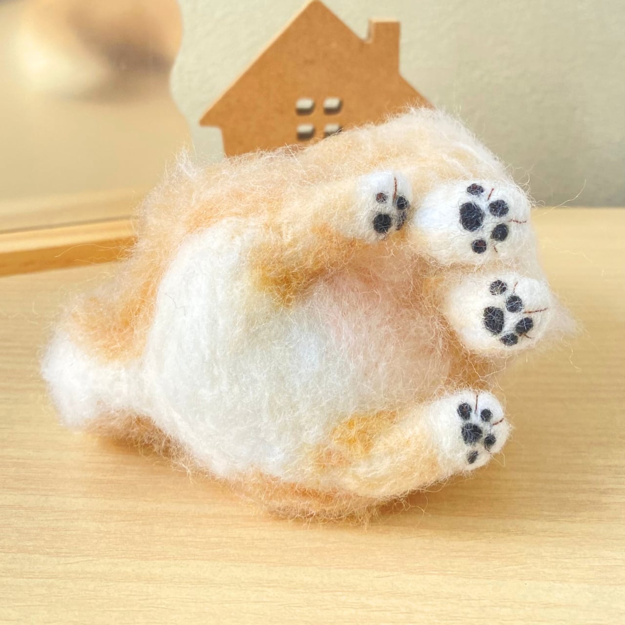 羊毛フェルト、樹脂粘土、プラスチックアイ、綿、ワイヤー