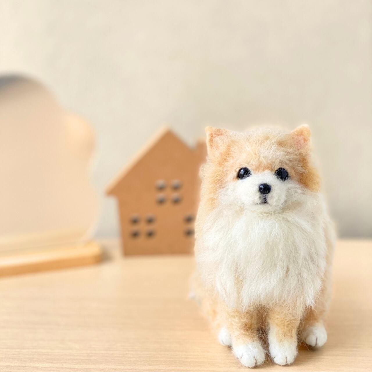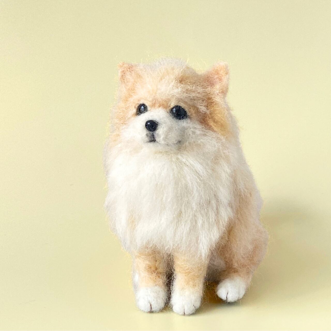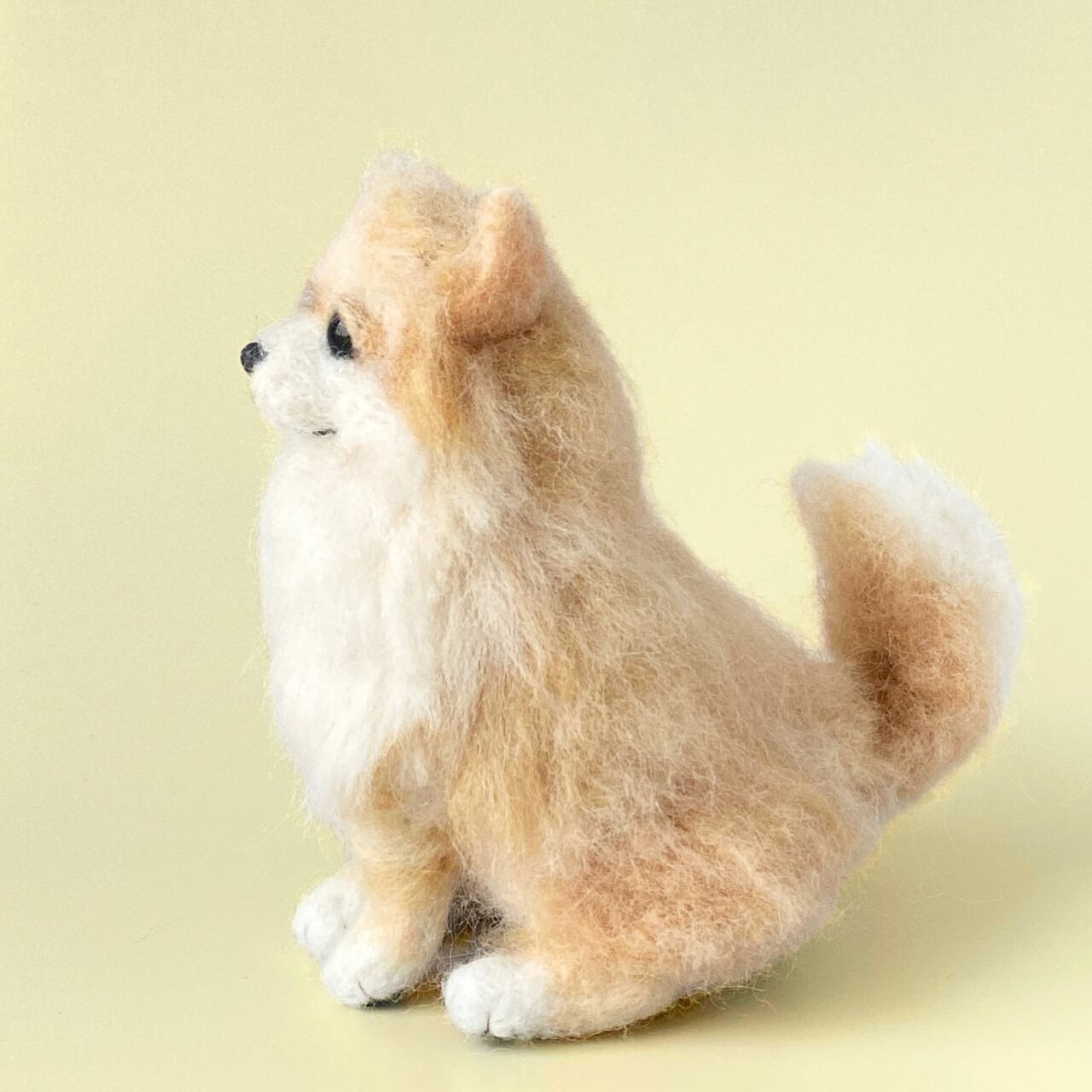【完成品】いつでもいっしょ♪ ふわふわ羊毛フェルトのポメラニアン 犬のぬいぐるみ